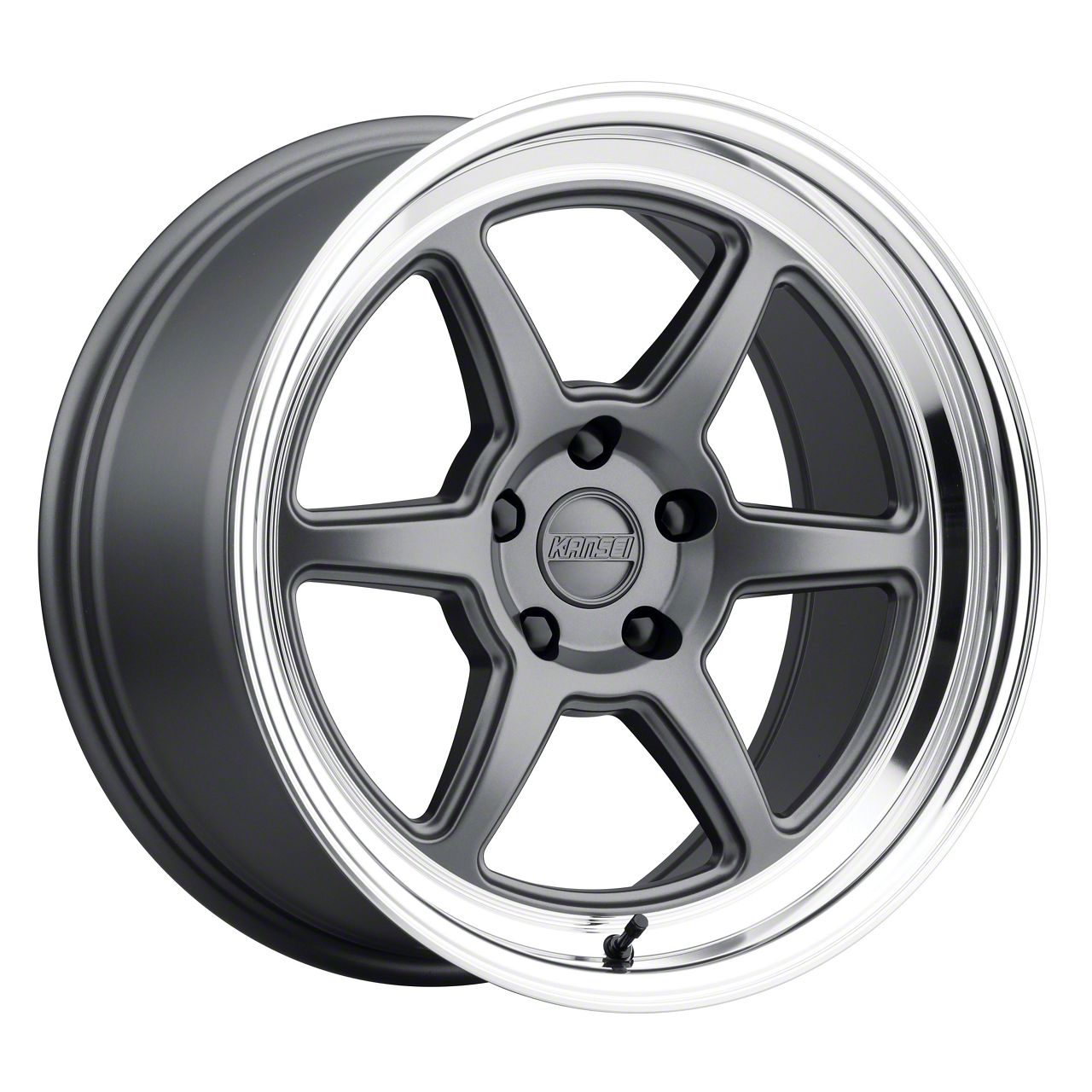 A 18X9 Kansei wheel. Overall wheel info: Diameter: 18, Width: 9, Bolt Pattern: 5X110, wheel_offset: 12, Finish: Matte Grey with Bright Machined Lip, Part No.: K14G-189021+12 - PATENT #D973005