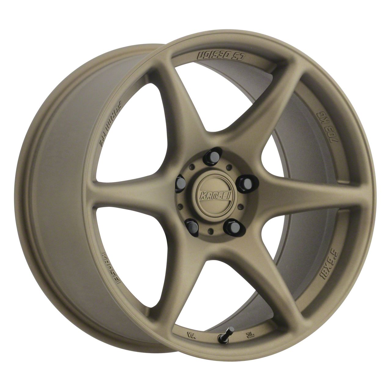 A 18X9.5 Kansei wheel. Overall wheel info: Diameter: 18, Width: 9.5, Bolt Pattern: 5X120, wheel_offset: 22, Finish: Textured Bronze, Part No.: K11B-189518+22 -