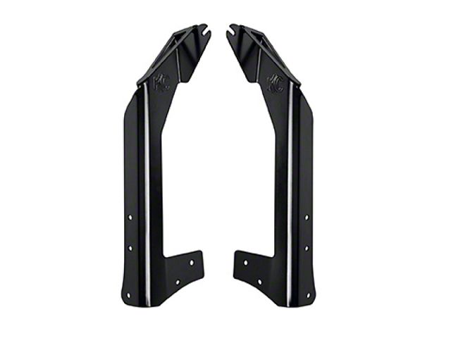This overhead light bracket allows you to mount KC's Gravity LED Pro6 or C-Series LED light bar over the windshield at roof level of your Jeep JK. These brackets are made of hardened steel and powder coated black for the ultimate in durability. KC HiLiTES ensured that mounting was easy when designing this bracket, allowing the user to bolt it right into the factory bolt locations. These brackets are Made in the USA and also come with mounting hardware, gaskets, and our signature KC 23 year warranty.