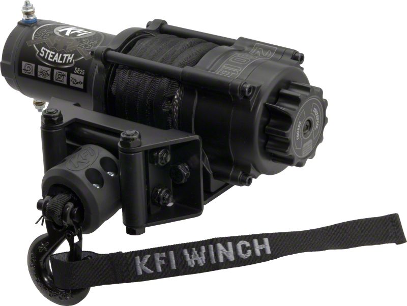 This 2,500 lbs. ATV Stealth Series winch features synthetic cable, cable hook stopper, a dynamic and mechanical braking system, water-resistant seals to keep the elements out, a standard 4-hole mounting design and a heavy-duty all metal turn clutch.