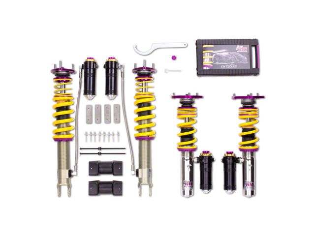 Using the Nordschleife as its testing grounds and the 7-post rig, KW developed its V4 Clubsport coilover kit. Wheel loads, vehicle weight and chassis reinforcements (increased body stiffness) can all be taken into consideration with Adjustment capabilities of the V4 Clubsport. The KW Clubsport coilovers combine KW's high-end racing technology with maintenance-free KW OEM quality components. Designed to provide you the ideal product to utilize the full potential of your sports car during autocross, track days, high performance drivers education (HPDE) courses, club racing, and is tested rigorously on race tracks such as the Nurburgring Nordschleife. Race teams rely on KW's racing expertise and experience for their vehicle setup. This same championship winning pedigree is mirrored in the development of each one of the KW Clubsport coilover systems. Similar to the KW Competition suspension used in international motorsports, the KW V4 Clubsport coilover kit allows fine tuning of the compression damping separately in the low-speed and high-speed range. The click adjustments of the TVCLH-A valve technology make for easy Adjustment directly on the reservoir. You can modify the low-speed compression damping with 6 precise clicks with the purple low speed Adjustment dial and directly beneath it the golden Adjustment wheel provides an additional 14 precise clicks of high speed compression adjustment. In addition, the TVR-A technology provides 16 clicks to noticeably adjust the rebound damping independently of the compression damping. If you would like to adjust the KW V4 Clubsport coilover kit it can easily be adjusted for more comfort or to an alternative setup for a new race track. The KW V4 Clubsport benefits from the same motorsports technology that has proven its endurance with multiple overall wins at the ADAC Zurich 24h Nurburgring race.