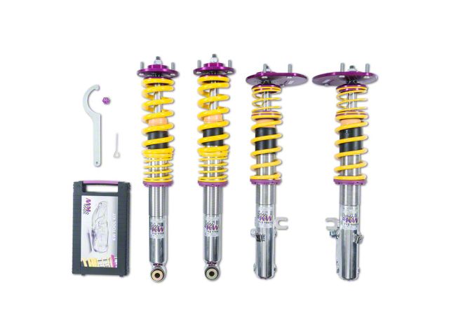 Designed to maximize the performance on vehicles with DOT-R and other ultra high-performance tire setups. KW V3 Clubsport coilovers are the ideal choice for double-duty street cars, use at HPDE's(high performance drivers education), time attack or time trials, and club level racing. The Clubsport setup was specially designed on the Nordschleife and the continuous adjustable ride height allows for fine corner weight or making setup changes. The TVR-A and TVC-A valve technology provide an unmatched level of separately adjustable damping for the rebound and compression enabling a customized set up appropriate for the vehicle's modifications such as weight, tire characteristics, and other various conditions. The KW V3 Clubsport INOX-LINE coilover kit is the ideal tool for performance-oriented drivers and experienced tuning enthusiasts who place a strong emphasis on the overall performance of their suspension. The KW V3 Clubsport features patented TVR-A and TVC-A technology that provides separately adjustable rebound and compression damping. The extensive Adjustment angle of the independently configurable rebound and compression make it easy to directly influence the steering behavior, directional stability, grip and handling characteristics for confident and repeatable results at the limit of driving dynamics.