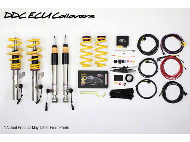 Experience the innovation and quality of high-end engineering with the KW DDC (Dynamic Damping Control) ECU (Electronic Control Unit) coilover suspension, made in Germany. This system combines intelligent, app-controlled suspension tuning with ride height adjustability, allowing you to upgrade your vehicle with an adaptive damper system and electronically control the level of performance or comfort that meets your requirements.