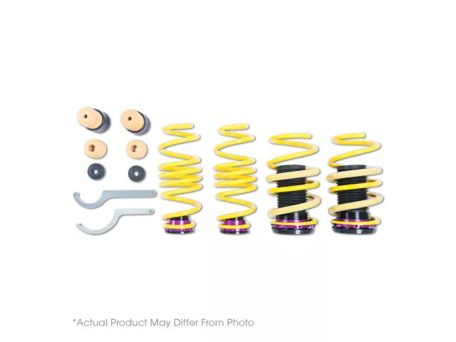 KW (H.A.S) Height Adjustable Spring kits are a great alternative to conventional lowering springs. You are no longer stuck with a fixed lowering height. KW H.A.S. systems allow you to adjust the vehicle ride height with the KW height adjuster even after the kit has been installed. Your vehicle not only gets a more dynamic look, but also the steering behavior and response of the standard dampers becomes more agile. All driver assistance systems and comfort features of a factory adaptive or electronic suspension remain operational and work harmoniously with our vehicle specific spring set up. KW uses high-quality springs made of chrome-silicon steel with spring rates designed specifically for each respective OE suspension damper and wheel load. KW's expertise and engineering ensure the spring rates will pair perfectly with the different damper characteristics of your factory adaptive electronic suspension. Along with the use of high quality materials and the included KW ride height Adjustment - mechanisms, our KW H.A.S. kits always includes the vehicle-specific bump stops with dust protection system to protect your factory suspension against wear & tear caused by road grime and debris. Similar to a coilover suspension, the KW H.A.S kit allow a continuous adjustable ride height within a tested range, something not possible with conventional lowering springs. The dust protection elements and spring perches included in the delivery, when applicable, are always adjusted to the maximum technically possible lowering, typically limited by the factory dampers. With KW height adjustable springs, a sporty and harmonious driving behavior can be achieved without the driving dynamics of performance-oriented vehicles suffering. As with all KW suspension products our engineers develop vehicle specific parameters and spring specifications which undergo comprehensive testing on the Nurburgring Nordschleife and in our KW 7-post Driving Dynamic Test Center.