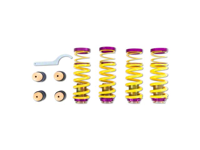 KW (H.A.S) Height Adjustable Spring kits are a great alternative to conventional lowering springs. You are no longer stuck with a fixed lowering height. KW H.A.S. systems allow you to adjust the vehicle ride height with the KW height adjuster even after the kit has been installed. Your vehicle not only gets a more dynamic look, but also the steering behavior and response of the standard dampers becomes more agile. All driver assistance systems and comfort features of a factory adaptive or electronic suspension remain operational and work harmoniously with our vehicle specific spring set up.