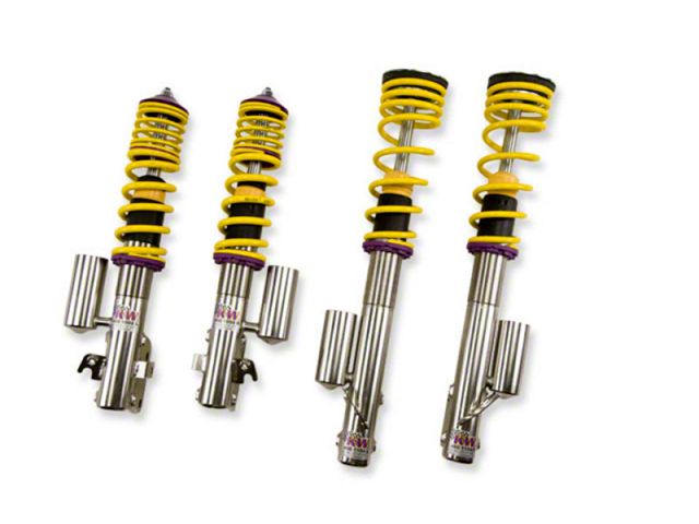 The KW Variant 3 INOX-LINE coilover kit is the ideal tool for performance-oriented drivers and experienced tuning enthusiasts who place a strong emphasis on the overall performance of their suspension. The Variant 3 features patented TVR-A and TVC-A technology that provides separately adjustable rebound and compression damping. The extensive adjustment range of the independently configurable rebound and compression make it easy to directly influence the steering behavior, directional stability, grip, and handling characteristics for confident and repeatable results at the limit of driving dynamics.