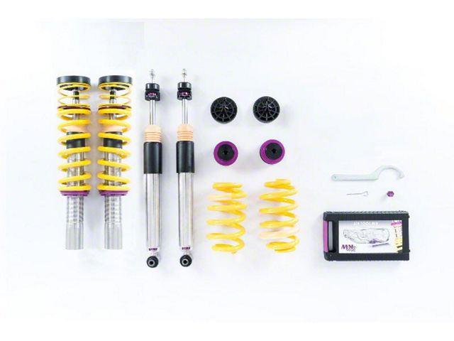 The KW Variant 3 INOX-LINE coilover kit is the ideal tool for performance-oriented drivers and experienced tuning enthusiasts who place a strong emphasis on the overall performance of their suspension. The Variant 3 features patented TVR-A and TVC-A technology that provides separately adjustable rebound and compression damping. The extensive adjustment range of the independently configurable rebound and compression makes it easy to directly influence the steering behavior, directional stability, grip, and handling characteristics for confident and repeatable results at the limit of driving dynamics.