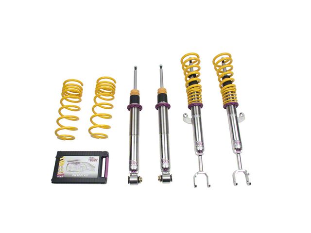 The KW Variant 3 INOX-LINE coilover kit is the ideal tool for performance-oriented drivers and experienced tuning enthusiasts who place a strong emphasis on the overall performance of their suspension. The Variant 3 features patented TVR-A and TVC-A technology that provides separately adjustable rebound and compression damping. The extensive adjustment range of the independently configurable rebound and compression makes it easy to directly influence the steering behavior, directional stability, grip, and handling characteristics for confident and repeatable results at the limit of driving dynamics.