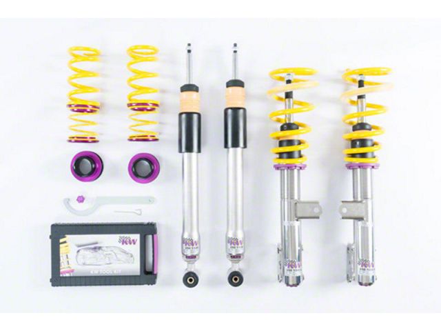 The KW Variant 3 INOX-LINE coilover kit is the ideal tool for performance-oriented drivers and experienced tuning enthusiasts who place a strong emphasis on the overall performance of their suspension. The Variant 3 features patented TVR-A and TVC-A technology that provides separately adjustable rebound and compression damping. The extensive adjustment range of the independently configurable rebound and compression makes it easy to directly influence the steering behavior, directional stability, grip, and handling characteristics for confident and repeatable results at the limit of driving dynamics.