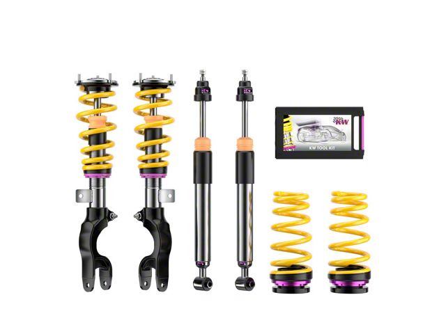 The KW V3 Leveling coilovers are ideal for drivers who are looking for the improved driving dynamics of a KW V3 coilover suspension with the ground clearance near that of a stock vehicle. The KW V3 Leveling coilovers are for drivers who frequent poorly maintained roads or use their car as a daily driver in environments where maximum lowering is not advised. The KW V3 Leveling coilovers have separate and independently adjustable low-speed rebound and low-speed compression adjustments that utilize patented TVR-A & TVC-A multi-valve technology. This allows you to further influence the preset damping characteristics to achieve the ideal ride you are looking for. If necessary, the seamlessly adjustable KW V3 Leveling coilovers allows for a subtle height adjustment to even out the car body front to rear and in some cases, you can even achieve a slight lift, providing additional ground clearance. With the KW V3 Leveling coilovers, the rolling and pitching movements of the vehicle body are reduced during compression and rebound, so you benefit from unadulterated directness and sportier handling when driving.