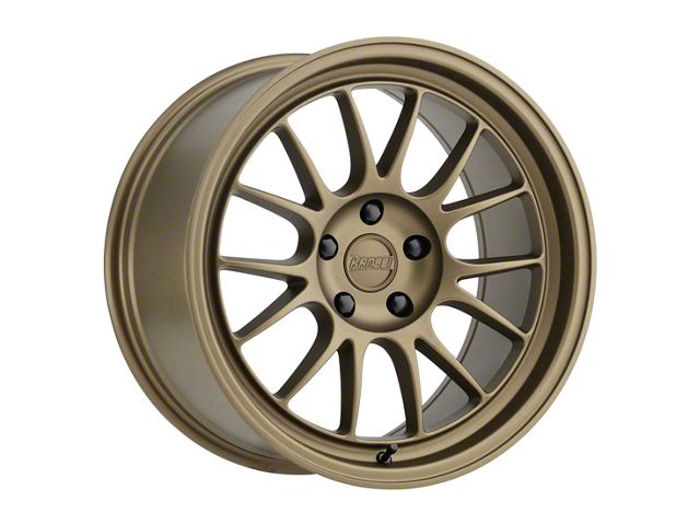A 18X9.5 Kansei wheel. Overall wheel info: Diameter: 18, Width: 9.5, Bolt Pattern: 5X114.3, wheel_offset: 22, Finish: Textured Bronze, Part No.: K13B-189512+22 - PATENT #D960065