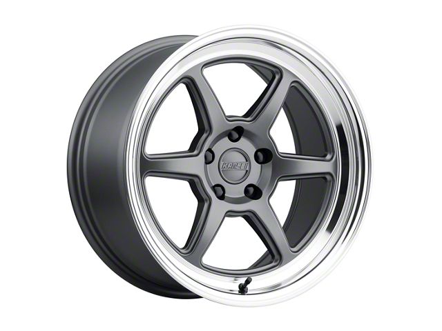 A 18X9.5 Kansei wheel. Overall wheel info: Diameter: 18, Width: 9.5, Bolt Pattern: 5X114.3, wheel_offset: 22, Finish: Matte Grey with Bright Machined Lip, Part No.: K14G-189512+22 - PATENT #D973005