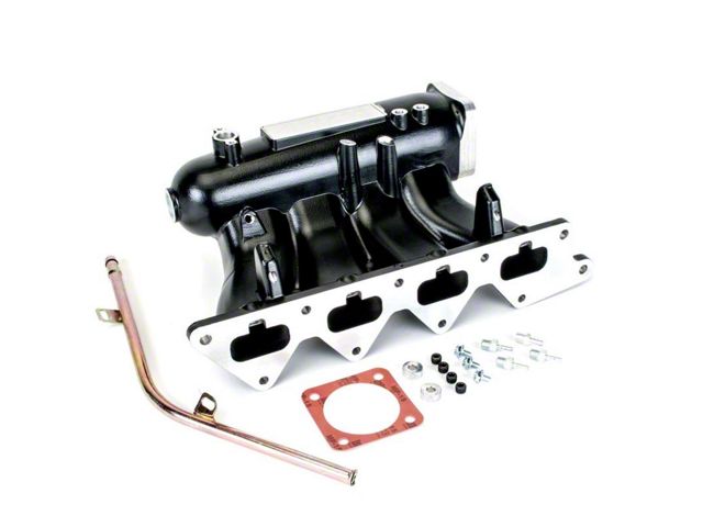 The intake manifold solution street-driven Evo VIII-IX owners have been waiting for is here. Skunk2's Evo Pro Series Intake Manifold in its signature Black Series finish was designed with 'street enthusiasts' who utilize turbochargers as small as the factory unit in mind and want more power without sacrificing mid-range performance. Skunk2's all-new, cast-aluminum Evo Pro Series Intake Manifold—which was tested and developed on the company's own Evo Time Attack race car—is a direct-fit replacement and offers significant horsepower and torque gains without compromising mid-range power output. Conventional large-plenum, short-runner intake manifolds provide top-end power gains but suffer in the mid-range. Not Skunk2's. Its all-new Pro Series Intake Manifold features OEM-length runners with larger bores and a special tapered design as well as a larger, tapered plenum that together preserve mid-range power but increase and accelerate airflow to allow for significant top-end gains. Peak gains as high as 33+ whp have been realized when paired with Pro Series Throttle Bodies with positive results across the board, beginning as low as 3,200 rpm. Pro Series Intake Manifolds also feature thicker castings when compared to the OEM piece, which leaves plenty of room for porting, and each runner exit is machined and hand-finished to best match the cylinder head's ports. The Pro Series Intake Manifold's unique design increases wave scavenging effects at the engine's ideal operating range, which allow for a broad increase in usable power. Skunk2's Evo Pro Series Intake Manifold is a simple bolt-on affair. Unlike other intake manifolds, Skunk2's incorporates the factory configuration, leaving the throttle body in its original location, which means the original intercooler piping and hoses can be reused. Pro Series Intake Manifolds also include the necessary provisions for the Evo's brake booster line, MDP sensor, and vacuum accessories (EGR valve excluded)