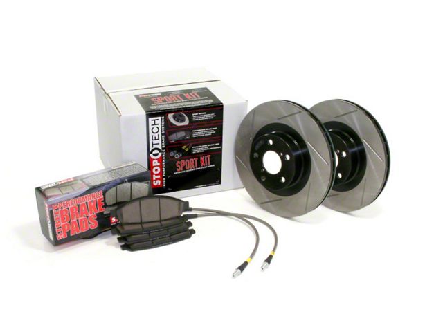 Significant brake performance improvements using the factory calipers and pre-matched; direct-replacement (OEM) sized components. This StopTech Sport Axle Pack includes Slotted StopTech Sport Rotors; StopTech Sport Pads and StopTech Stainless Steel Lines.