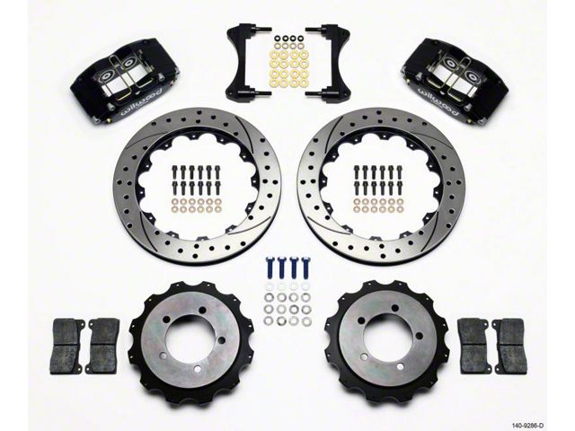 Forged billet DynaPro four piston calipers and high performance BP-10 compound pads generate high clamping power with firm pedal response for this group of specialized rear axle brake kits. These kits retain full function of the OE parking brake and provide complimentary performance and style with front big brake upgrades. Caliper piston sizes are selected to provide balanced rear bias ratios using the output from the OE master cylinder. Rear rotor and hat combinations are engineered specific to each vehicle to provide brake performance upgrades and precise fit with the mounting of the DynaPro calipers.