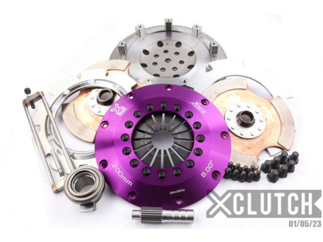 XClutch performance upgrades have been engineered to provide the ultimate in clutch performance. Utilising the latest pressure plate design and friction material composition, XClutch upgrades offer the ideal balance between driveability and performance for different vehicle applications. The pivot point and diaphragm design are carefully analysed to ensure positive pedal feel and increased clamping force. With one of the world's most advanced clutch testing and R&D facilities, in-house vehicle testing and over 30 years of clutch experience, XClutch performance upgrades offer the highest levels of engineering and product development for your street vehicle, 4x4 or dedicated race car. The XClutch 8 inch Race Clutch is designed to suit a wide range of vehicles commonly used in motorsport applications. As the clutch of choice for many club level racers and drifters around the world, these kits offer a great balance between torque holding capability, heat capacity and weight to suit a variety of different motorsport categories. The XClutch 8 inch solid race clutch consists of a performance flywheel, solid-centered ceramic clutch discs, aluminium cover assembly and release bearing (if applicable)