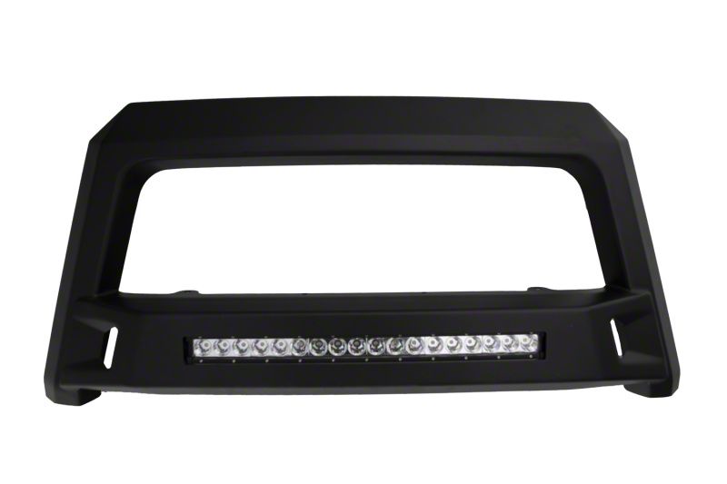 Whether the truck has aggressive lines or more refined curves, the LUND Revolution Bull Bar delivers extra front-end protection with its leading edge, chiseled three-dimensional design. LUND Revolution is constructed from heavy-gauge stamped steel with a light textured matte-black, powder coated finish. The rugged style features an integrated off-road LED light bar with a wiring kit, and installs with no drilling.