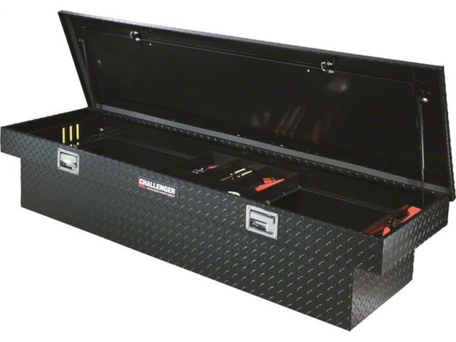 Strength, functionality and great looks, for professional quality are yours with the Challenger line of storages boxes. Each box features twin commercial gas struts that lift lid automatically for easy, one-handed use; lockable, quick-release stainless handles and patent pending structured foam filled lids that can stand up to even the most challenging loads. Seams are hand wielded for durability and strength and lids are bolted on to box body using a single heavy duty aluminum, piano style hinge for years of reliable service. Rust resistant black powder coated finish is electro-statically applied for maximum protection against wear and harsh weather conditions.