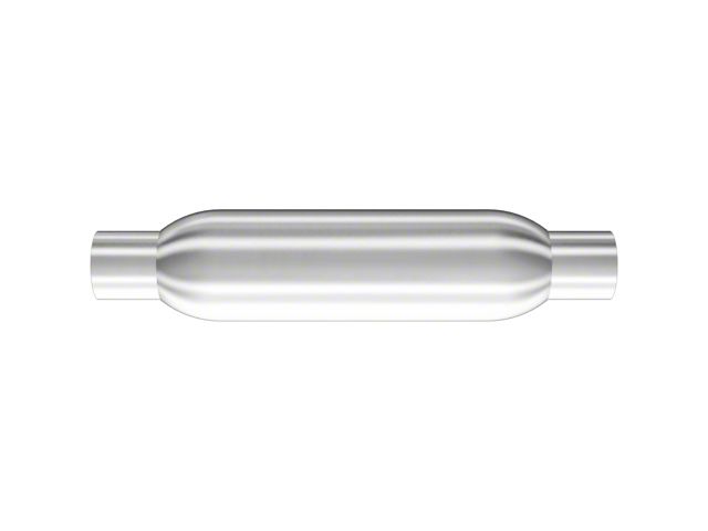 The MagnaFlow 3.5in. Round Glasspack Performance Exhaust Muffler 18114 enhances your ride with the deep, classic sound that glasspack mufflers are known for. The round muffler body features a free-flowing reversible straight-through 2/2in. diameter configuration and single stage packing with a satin finish. This weight-optimized glasspack muffler is engineered to bring out the inner hot rod in your ride with plenty of volume and dyno-proven performance, so please check to ensure compliance with local noise regulations. 18114 offers flexibility when it comes to installation thanks to its universal design, however, professional installation is recommended. Muffler 18114 is made of corrosion resistant aluminized steel and produced using CNC precision robotic manufacturing techniques, all backed by MagnaFlow's 90-day limited construction warranty.