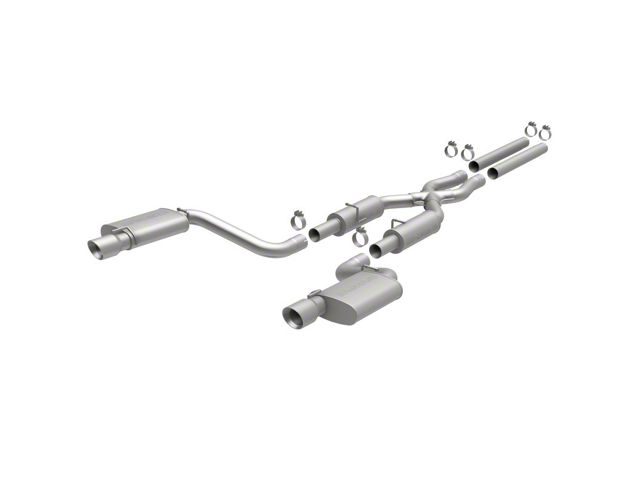 The MagnaFlow 2012-2014 Dodge Charger Street Series Cat-Back Performance Exhaust System brings out the personality of your 6.4L 2012-2014 Dodge Charger with our signature resonant, powerful engine tone and dyno-proven performance. Thanks to its fast-flowing, mandrel bent 3in. main piping and 4 Straight-Through mufflers ending in a Dual Split Rear exit with 4in. Polished Welded-On Double Wall Angle Cut Folded Edge tips, this Dodge Charger exhaust kit has the performance chops to match its sporty sound and appearance. Upgrade your ride to the next level with an exhaust that has the pipes to put other Dodge Charger's to shame. With this system your vehicle will be producing Moderate exterior and Mild interior sound levels while leaving other cars and trucks feeling envious at every stoplight. Exhaust kit 15494 features a cat-back layout that replaces your ride's stock exhaust components from near the catalytic converter on back. Extensive 3D scanning during development has resulted in a direct-fit design that you can easily install yourself. 15494 is produced using CNC precision robotic manufacturing techniques and is backed by MagnaFlow's 1-year limited finish warranty and limited lifetime construction warranty.