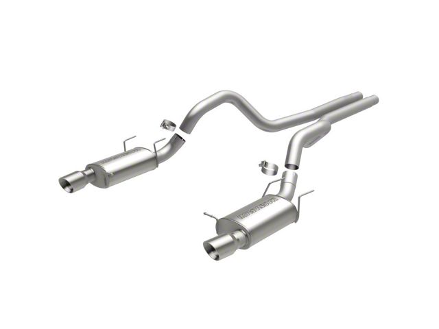 The MagnaFlow 2013-2014 Ford Mustang Street Series Cat-Back Performance Exhaust System brings out the personality of your 5.0L 2013-2014 Ford Mustang with our signature resonant, powerful engine tone and dyno-proven performance. Thanks to its fast-flowing, mandrel bent 3in. main piping and 2 Straight-Through mufflers ending in a Dual Split Rear exit with 4in. Polished Welded-On Double Wall Angle Cut Folded Edge tips, this Ford Mustang exhaust kit has the performance chops to match its sporty sound and appearance. Upgrade your ride to the next level with an exhaust that has the pipes to put other Ford Mustang's to shame. With this system your vehicle will be producing Moderate exterior and Mild interior sound levels while leaving other cars and trucks feeling envious at every stoplight. Exhaust kit 15149 features a cat-back layout that replaces your ride's stock exhaust components from near the catalytic converter on back. Extensive 3D scanning during development has resulted in a direct-fit design that you can easily install yourself. 15149 is produced using CNC precision robotic manufacturing techniques and is backed by MagnaFlow's 1-year limited finish warranty and limited lifetime construction warranty.