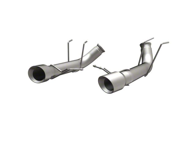 The MagnaFlow 2013-2014 Ford Mustang Race Series Axle-Back Performance Exhaust System 15152 doesn't leave any performance on the table with a race-ready, light weight, dyno-proven design ready to help your 5.0L 2013-2014 Ford Mustang take on any pretenders, whether on the track or the street. Exhaust kit 15152 is engineered to produce our powerful, resonant signature exhaust note at Very Aggressive exterior and Aggressive interior sound levels with an axle-back layout that replaces your vehicle's exhaust components from near the rear axle on back. Please check to ensure compliance with local noise regulations. This Ford Mustang exhaust kit features fast-flowing mandrel bent 3in. diameter main piping that ends in a Dual Split Rear exit with 4in. Polished Welded-On Double Wall Angle Cut Folded Edge tips. Extensive 3D scanning during development and the use of advanced CNC precision robotic manufacturing techniques ensures that 15152's direct-fit design fits so perfectly that you can easily install the system yourself. The durable, corrosion resistant stainless steel construction of exhaust system 15152 is backed by MagnaFlow's limited lifetime warranty.
