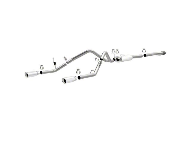 The MagnaFlow Street Series Cat-Back Performance Exhaust System 15268 brings out the personality of your Truck with our signature resonant, powerful engine tone and dyno-proven performance. Thanks to its fast-flowing, mandrel bent 3in. main piping and 1 Straight-Through mufflers ending in a Dual Split Rear exit with 4in. Polished Clamp-On Double Wall Angle Cut Rolled Edge tips, this Truck exhaust kit has the performance chops to match its sporty sound and appearance. Upgrade your ride to the next level with an exhaust that has the pipes to put other Truck's to shame. With this system your vehicle will be producing Aggressive exterior and Moderate interior sound levels while leaving other cars and trucks feeling envious at every stoplight. Exhaust kit 15268 features a cat-back layout that replaces your ride's stock exhaust components from near the catalytic converter on back. Extensive 3D scanning during development has resulted in a direct-fit design that you can easily install yourself. 15268 is produced using CNC precision robotic manufacturing techniques and is backed by MagnaFlow's 1-year limited finish warranty and limited lifetime construction warranty.