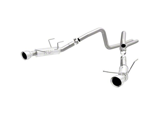 The MagnaFlow 2014 Ford Mustang Competition Series Cat-Back Performance Exhaust System 15245 brings an aggressive, attention-grabbing edge to the deep resonant exhaust note we're so well known for. This exhaust kit is designed to enhance your 3.7L 2014-2014 Ford Mustang with dyno-proven performance made possible thanks to fast-flowing mandrel bent 2.5in. main piping and 2 Straight-Through mufflers ending in a Dual Split Rear exit with 4.5in. Polished Welded-On Double Wall Angle Cut Folded Edge tips featuring a sporty finish. The exhaust system's cat-back layout replaces your ride's exhaust system from near the catalytic converter on back. Exhaust system 15245 is engineered to make your vehicle's engine produce Aggressive exterior and Moderate interior sound levels, befitting its competition-oriented design. 15245's direct-fit design makes installation a breeze thanks to the use of advanced 3D scanning techniques. This performance exhaust system is made of 100% durable and corrosion-resistant stainless steel and produced using CNC precision robotic manufacturing, all backed by MagnaFlow's limited lifetime warranty. Please check to ensure compliance with local noise regulations.