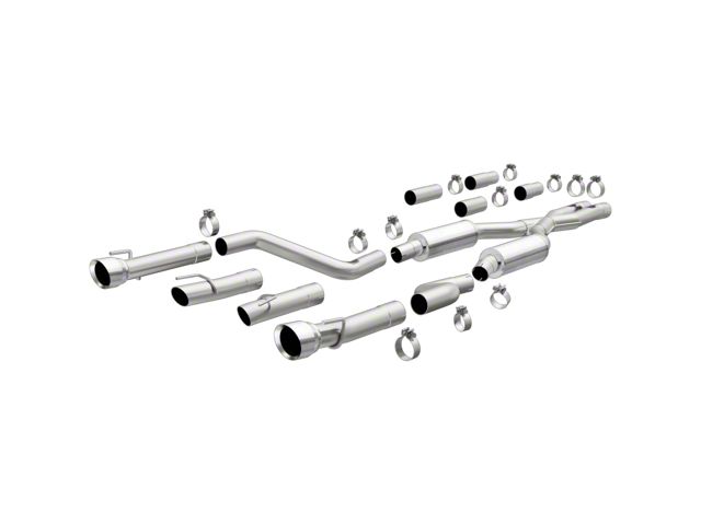 The MagnaFlow 2015-2023 Dodge Charger Competition Series Cat-Back Performance Exhaust System 19371 brings an aggressive, attention-grabbing edge to the deep resonant exhaust note we're so well known for. This exhaust kit is designed to enhance your 5.7L, 6.2L, 6.4L 2015-2023 Dodge Charger with dyno-proven performance made possible thanks to fast-flowing mandrel bent 3in. main piping and 2 Straight-Through mufflers ending in a Dual Split Rear exit with 4.5in. Polished Welded-On Double Wall Angle Cut Folded Edge tips featuring a sporty finish. The exhaust system's cat-back layout replaces your ride's exhaust system from near the catalytic converter on back. Exhaust system 19371 is engineered to make your vehicle's engine produce Aggressive exterior and Moderate interior sound levels, befitting its competition-oriented design. 19371's direct-fit design makes installation a breeze thanks to the use of advanced 3D scanning techniques. This performance exhaust system is made of 100% durable and corrosion-resistant stainless steel and produced using CNC precision robotic manufacturing, all backed by MagnaFlow's limited lifetime warranty. Please check to ensure compliance with local noise regulations.