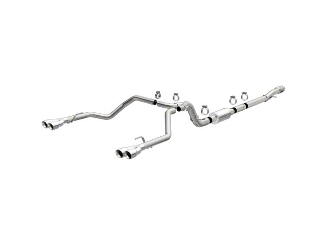 The MagnaFlow Street Series Cat-Back Performance Exhaust System 19489 brings out the personality of your Truck with our signature resonant, powerful engine tone and dyno-proven performance. Thanks to its fast-flowing, mandrel bent 3.5in. main piping and 1 Straight-Through mufflers ending in a Quad Split Rear exit with 3.5in. Polished Welded-On Double Wall Angle Cut Folded Edge tips, this Truck exhaust kit has the performance chops to match its sporty sound and appearance. Upgrade your ride to the next level with an exhaust that has the pipes to put other Truck's to shame. With this system your vehicle will be producing Aggressive exterior and Moderate interior sound levels while leaving other cars and trucks feeling envious at every stoplight. Exhaust kit 19489 features a cat-back layout that replaces your ride's stock exhaust components from near the catalytic converter on back. Extensive 3D scanning during development has resulted in a direct-fit design that you can easily install yourself. 19489 is produced using CNC precision robotic manufacturing techniques and is backed by MagnaFlow's 1-year limited finish warranty and limited lifetime construction warranty.