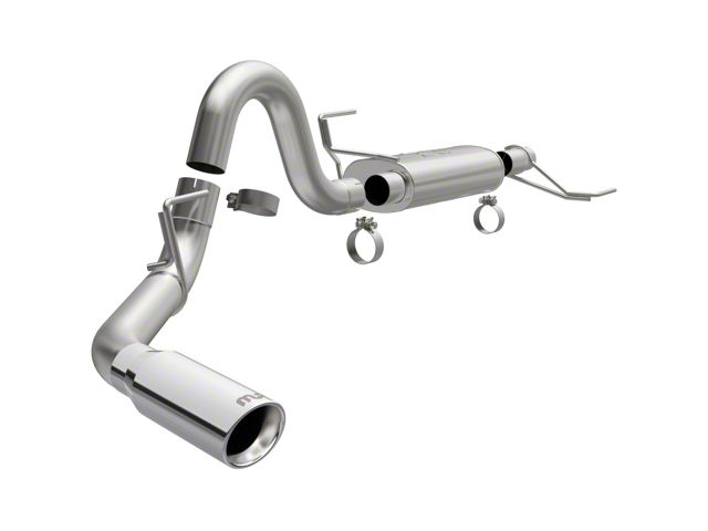The MagnaFlow Ford F-150 Street Series Cat-Back Performance Exhaust System #19590 is designed to ensure that the 3.5L V6 hybrid system in your 2021-2023 Ford F-150 PowerBoost sounds as powerful as it is. In addition to upgrading your truck with MagnaFlow's deep signature exhaust tone, extensive dyno testing has shown that #19590 also improves overall engine performance. Mandrel bent 3" main piping leads to a straight-through muffler and on to a single passenger side exit with polished 4" tip. This Ford F-150 PowerBoost exhaust system is engineered to produce a mild interior sound and moderate exterior sound, an ideal combination for being heard on the street while still being able to listen to music beyond the engine note. Exhaust kit #19590 features durable stainless-steel construction and is produced using CNC precision robotic manufacturing techniques, all backed by a limited lifetime warranty.