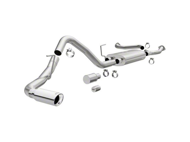 With the MagnaFlow Nissan Frontier Street Series Cat-Back Performance Exhaust System #19574 everyone else will know who rules the road once they hear that deep, resonant exhaust note that MagnaFlow is famous for. Exhaust kit #19574 features 3" main piping that passes through a straight-through muffler before terminating in a 4" single side exit with polished tip. An integrated NDT (No Drone Technology) resonator and versatile tuning of the piping and straight-through muffler ensure that this exhaust system nullifies the unwanted droning noises that can otherwise occur at freeway speeds while maintaining moderate exterior and mild interior sound levels. The exhaust system is designed to enhance your 2022-2023 Nissan Frontier Crew Cab or King Cab with dyno-proven performance gains and tuned to produce mild interior and moderate exterior sound levels. This Nissan Frontier exhaust system is produced using CNC precision robotic manufacturing techniques and durable, corrosion resistant stainless steel. #19574 is backed by MagnaFlow's limited lifetime warranty.