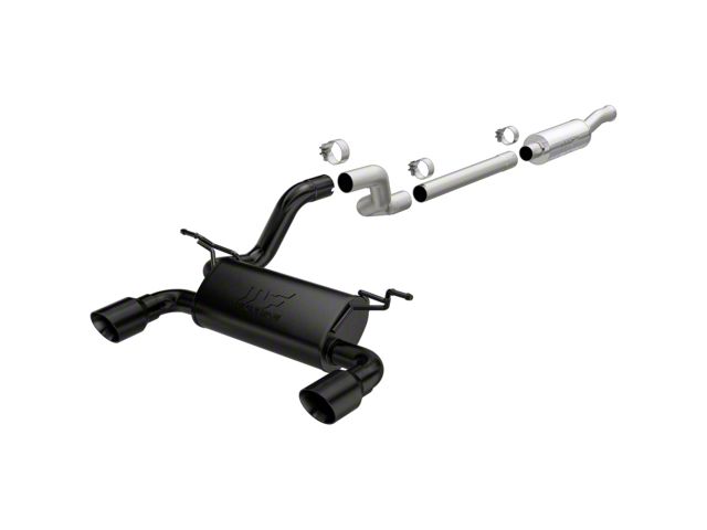 The MagnaFlow 2018-2024 Jeep Wrangler Street Series Cat-Back Performance Exhaust System 19437 brings out the personality of your 2.0L 2018-2024 Jeep Wrangler with our signature resonant, powerful engine tone and dyno-proven performance. Thanks to its fast-flowing, mandrel bent 2.5in. main piping and 2 Straight-Through mufflers ending in a Dual Split Rear exit with 4in. Black Coated Welded-On Double Wall Angle Cut Folded Edge tips, this Jeep Wrangler exhaust kit has the performance chops to match its sporty sound and appearance. Upgrade your ride to the next level with an exhaust that has the pipes to put other Jeep Wrangler's to shame. With this system your vehicle will be producing Moderate exterior and Mild interior sound levels while leaving other cars and trucks feeling envious at every stoplight. Exhaust kit 19437 features a cat-back layout that replaces your ride's stock exhaust components from near the catalytic converter on back. Extensive 3D scanning during development has resulted in a direct-fit design that you can easily install yourself. 19437 is produced using CNC precision robotic manufacturing techniques and is backed by MagnaFlow's 1-year limited finish warranty and limited lifetime construction warranty.