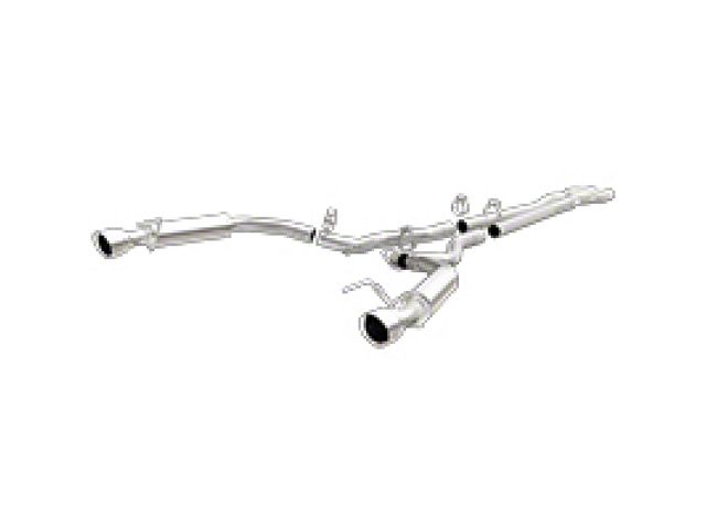 The MagnaFlow 2015-2017 Ford Mustang Competition Series Cat-Back Performance Exhaust System 19099 brings an aggressive, attention-grabbing edge to the deep resonant exhaust note we're so well known for. This exhaust kit is designed to enhance your 3.7L 2015-2017 Ford Mustang with dyno-proven performance made possible thanks to fast-flowing mandrel bent 2.5in. main piping and 2 Straight-Through mufflers ending in a Dual Split Rear exit with 4.5in. Polished Welded-On Double Wall Angle Cut Folded Edge tips featuring a sporty finish. The exhaust system's cat-back layout replaces your ride's exhaust system from near the catalytic converter on back. Exhaust system 19099 is engineered to make your vehicle's engine produce Aggressive exterior and Moderate interior sound levels, befitting its competition-oriented design. 19099's direct-fit design makes installation a breeze thanks to the use of advanced 3D scanning techniques. This performance exhaust system is made of 100% durable and corrosion-resistant stainless steel and produced using CNC precision robotic manufacturing, all backed by MagnaFlow's limited lifetime warranty. Please check to ensure compliance with local noise regulations.