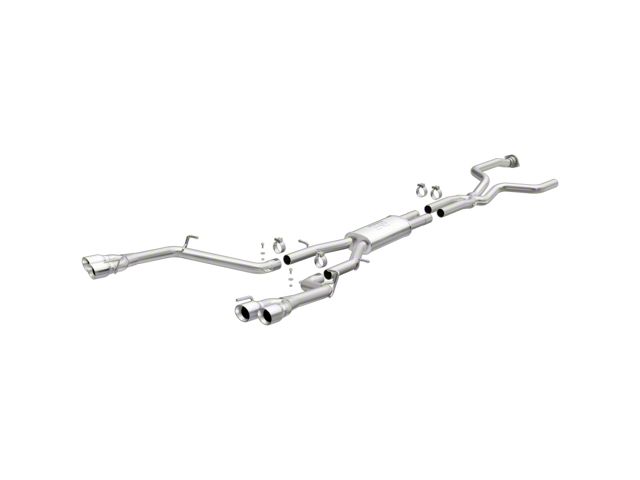 The MagnaFlow 2016-2019 Cadillac CT6 Street Series Cat-Back Performance Exhaust System brings out the personality of your 3.0L 2016-2019 Cadillac CT6 with our signature resonant, powerful engine tone and dyno-proven performance. Thanks to its fast-flowing, mandrel bent 2.5in. main piping and 1 Straight-Through mufflers ending in a Quad Split Rear exit with 3.5in. Polished Welded-On Double Wall Angle Cut Folded Edge tips, this Cadillac CT6 exhaust kit has the performance chops to match its sporty sound and appearance. Upgrade your ride to the next level with an exhaust that has the pipes to put other Cadillac CT6's to shame. With this system your vehicle will be producing Moderate exterior and Mild interior sound levels while leaving other cars and trucks feeling envious at every stoplight. Exhaust kit 19301 features a cat-back layout that replaces your ride's stock exhaust components from near the catalytic converter on back. Extensive 3D scanning during development has resulted in a direct-fit design that you can easily install yourself. 19301 is produced using CNC precision robotic manufacturing techniques and is backed by MagnaFlow's 1-year limited finish warranty and limited lifetime construction warranty.