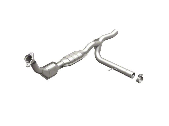 Keep the check engine light off with MagnaFlow HM Grade Federal/EPA Compliant Direct-Fit Catalytic Converter 24090. With features including free-flowing mandrel-bent tubing and highly corrosion resistant stainless steel construction, easily install this spun body converter yourself using the proper tools, no cutting or welding required. MagnaFlow's state-of-the-art metrology department uses the latest 3D scanning systems during research and development, so you can be confident that your new part will fit and function like the original equipment. By replicating the OE spun body design, the single laser fusion weld greatly reduces the possibility of a leak, and our compact, low-mass design also allows for greater thermal efficiency. Designed to fit the 2004-2008 Ford F-150 and 2006-2008 Lincoln Mark LT, this direct-fit catalytic converter also interchanges with OE parts 4L3Z-5E212-GE and L3Z5-E212-GB. Hardware is included to eliminate the hassle of working with corroded factory parts. This replacement part is designed to meet or exceed Federal emissions requirements set forth by the EPA, complying with legal standards for OBDII Federally registered vehicles with Federal/EPA Emission systems.