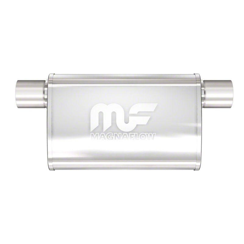 The MagnaFlow 4 X 9in. Oval Straight-Through Performance Exhaust Muffler 11375 is engineered to enhance your ride with a healthy helping of our signature exhaust sound and dyno-proven performance thanks to its free-flowing straight-through perforated stainless steel core wrapped in stainless steel mesh and acoustic fiber fill. The reversible, universal 2.25/2.25in. diameter inlet/outlet Straight-Through layout allows you to install it in whatever orientation and configuration you see fit. However, professional installation is highly recommended. Muffler 11375s weight-optimized 4x9x11in. oval-shaped body features a satin finish that elevates the overall aesthetics of your current exhaust setup. 11375 is made of durable, corrosion resistant stainless steel and produced using cutting-edge CNC precision robotic manufacturing techniques, all backed by MagnaFlow's limited lifetime construction warranty.