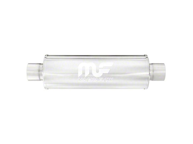 The MagnaFlow 4in. Round Straight-Through Performance Exhaust Muffler 10415 brings our world-famous exhaust sound and dyno-proven performance to your ride in a weight-optimized 4x4x14in. package with a premium satin finish. The straight-through free-flowing design of this round-bodied muffler's reversible, universal 2.25/2.25in. diameter inlet/outlet layout enables versatile installation options to match the spacing requirements of your vehicle. Due to the cutting and welding involved, professional installation is highly recommended. Internally, 10415 utilizes a perforated stainless steel core wrapped in stainless steel mesh and acoustic fiber fill to achieve a powerful, resonant tone. This muffler is made of durable, corrosion resistant stainless steel and produced using cutting-edge CNC precision robotic manufacturing techniques, all backed by MagnaFlow's limited lifetime construction warranty.