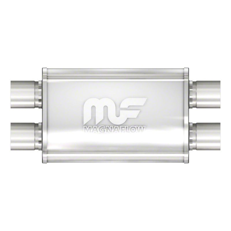 The MagnaFlow 4 X 9in. Oval Straight-Through Performance Exhaust Muffler 11386 is engineered to enhance your ride with a healthy helping of our signature exhaust sound and dyno-proven performance thanks to its free-flowing straight-through perforated stainless steel core wrapped in stainless steel mesh and acoustic fiber fill. The reversible, universal 2.5/2.5in. diameter inlet/outlet Straight-Through layout allows you to install it in whatever orientation and configuration you see fit. However, professional installation is highly recommended. Muffler 11386s weight-optimized 4x9x14in. oval-shaped body features a satin finish that elevates the overall aesthetics of your current exhaust setup. 11386 is made of durable, corrosion resistant stainless steel and produced using cutting-edge CNC precision robotic manufacturing techniques, all backed by MagnaFlow's limited lifetime construction warranty.