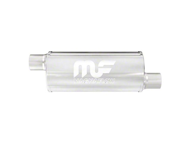 The MagnaFlow 6in. Round Straight-Through Performance Exhaust Muffler 12636 brings our world-famous exhaust sound and dyno-proven performance to your ride in a weight-optimized 6x6x14in. package with a premium satin finish. The straight-through free-flowing design of this round-bodied muffler's reversible, universal 2.5/2.5in. diameter inlet/outlet layout enables versatile installation options to match the spacing requirements of your vehicle. Due to the cutting and welding involved, professional installation is highly recommended. Internally, 12636 utilizes a perforated stainless steel core wrapped in stainless steel mesh and acoustic fiber fill to achieve a powerful, resonant tone. This muffler is made of durable, corrosion resistant stainless steel and produced using cutting-edge CNC precision robotic manufacturing techniques, all backed by MagnaFlow's limited lifetime construction warranty.