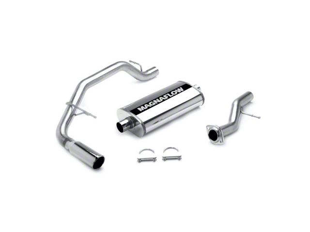 The MagnaFlow Street Series Cat-Back Performance Exhaust System 15666 brings out the personality of your SUV with our signature resonant, powerful engine tone and dyno-proven performance. Thanks to its fast-flowing, mandrel bent 3in. main piping and 1 Straight-Through mufflers ending in a Single Passenger Side Rear exit with 4in. Polished Welded-On Single Wall Angle Cut Rolled Edge tips, this SUV exhaust kit has the performance chops to match its sporty sound and appearance. Upgrade your ride to the next level with an exhaust that has the pipes to put other SUV's to shame. With this system your vehicle will be producing Moderate exterior and Mild interior sound levels while leaving other cars and trucks feeling envious at every stoplight. Exhaust kit 15666 features a cat-back layout that replaces your ride's stock exhaust components from near the catalytic converter on back. Extensive 3D scanning during development has resulted in a direct-fit design that you can easily install yourself. 15666 is produced using CNC precision robotic manufacturing techniques and is backed by MagnaFlow's 1-year limited finish warranty and limited lifetime construction warranty.
