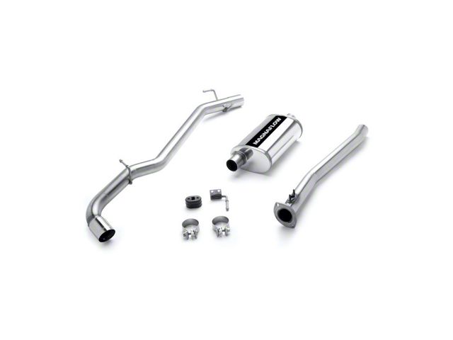 The MagnaFlow 2000-2004 Toyota Tacoma Street Series Cat-Back Performance Exhaust System brings out the personality of your 2.7L, 3.4L 2000-2004 Toyota Tacoma with our signature resonant, powerful engine tone and dyno-proven performance. Thanks to its fast-flowing, mandrel bent 2.5in. main piping and 1 Straight-Through mufflers ending in a Single Passenger Side Rear exit with 3in. Polished Welded-On Single Wall Angle Cut Cut Edge tips, this Toyota Tacoma exhaust kit has the performance chops to match its sporty sound and appearance. Upgrade your ride to the next level with an exhaust that has the pipes to put other Toyota Tacoma's to shame. With this system your vehicle will be producing Moderate exterior and Mild interior sound levels while leaving other cars and trucks feeling envious at every stoplight. Exhaust kit 15811 features a cat-back layout that replaces your ride's stock exhaust components from near the catalytic converter on back. Extensive 3D scanning during development has resulted in a direct-fit design that you can easily install yourself. 15811 is produced using CNC precision robotic manufacturing techniques and is backed by MagnaFlow's 1-year limited finish warranty and limited lifetime construction warranty.