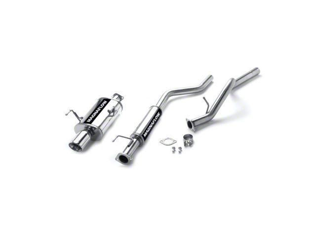 The MagnaFlow 2002-2006 Nissan Sentra Street Series Cat-Back Performance Exhaust System brings out the personality of your 2.5L 2002-2006 Nissan Sentra with our signature resonant, powerful engine tone and dyno-proven performance. Thanks to its fast-flowing, mandrel bent 2.25in. main piping and 2 Straight-Through mufflers ending in a Single Straight Passenger Side Rear exit with 4in. Polished Welded-On Double Wall Angle Cut Rolled Edge tips, this Nissan Sentra exhaust kit has the performance chops to match its sporty sound and appearance. Upgrade your ride to the next level with an exhaust that has the pipes to put other Nissan Sentra's to shame. With this system your vehicle will be producing Moderate exterior and Mild interior sound levels while leaving other cars and trucks feeling envious at every stoplight. Exhaust kit 15764 features a cat-back layout that replaces your ride's stock exhaust components from near the catalytic converter on back. Extensive 3D scanning during development has resulted in a direct-fit design that you can easily install yourself. 15764 is produced using CNC precision robotic manufacturing techniques and is backed by MagnaFlow's 1-year limited finish warranty and limited lifetime construction warranty.