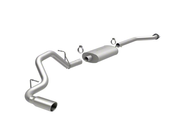 The MagnaFlow Street Series Cat-Back Performance Exhaust System 15778 brings out the personality of your Truck with our signature resonant, powerful engine tone and dyno-proven performance. Thanks to its fast-flowing, mandrel bent 3in. main piping and 1 Straight-Through mufflers ending in a Single Passenger Side Rear exit with 4in. Polished Welded-On Single Wall Angle Cut Rolled Edge tips, this Truck exhaust kit has the performance chops to match its sporty sound and appearance. Upgrade your ride to the next level with an exhaust that has the pipes to put other Truck's to shame. With this system your vehicle will be producing Moderate exterior and Mild interior sound levels while leaving other cars and trucks feeling envious at every stoplight. Exhaust kit 15778 features a cat-back layout that replaces your ride's stock exhaust components from near the catalytic converter on back. Extensive 3D scanning during development has resulted in a direct-fit design that you can easily install yourself. 15778 is produced using CNC precision robotic manufacturing techniques and is backed by MagnaFlow's 1-year limited finish warranty and limited lifetime construction warranty.
