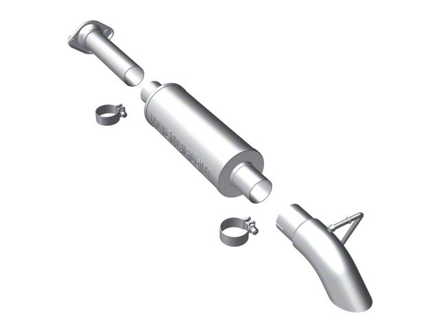 The MagnaFlow 2004-2006 Jeep Wrangler Off-Road Pro Series Cat-Back Performance Exhaust System 17121 brings additional off-roading prowess and our deep signature exhaust note to your 4.0L 2004-2006 Jeep Wrangler with a weight-optimized, dyno-tested, corrosion resistant and durable stainless steel design engineered to closely hug the undercarriage for improved ground clearance. Exhaust kit 17121 is engineered to produce Very Aggressive exterior and Aggressive interior sound levels. Extensive 3D scanning was used during the development of this Jeep Wrangler exhaust system to create a direct-fit design, enabling a do-it-yourself installation process. 17121's emissions-legal cat-back design replaces all your truck's exhaust components from the catalytic converter on back with its 2.5in. diameter mandrel bent main piping that passes through 1 Straight-Through mufflers before ending in a turndown before rear axle exit with 3in. Satin Clamp-On Single Wall Turndown Cut Edge tips. Exhaust system 17121 is produced using advanced CNC precision robotic manufacturing techniques and backed by MagnaFlow's limited lifetime warranty.