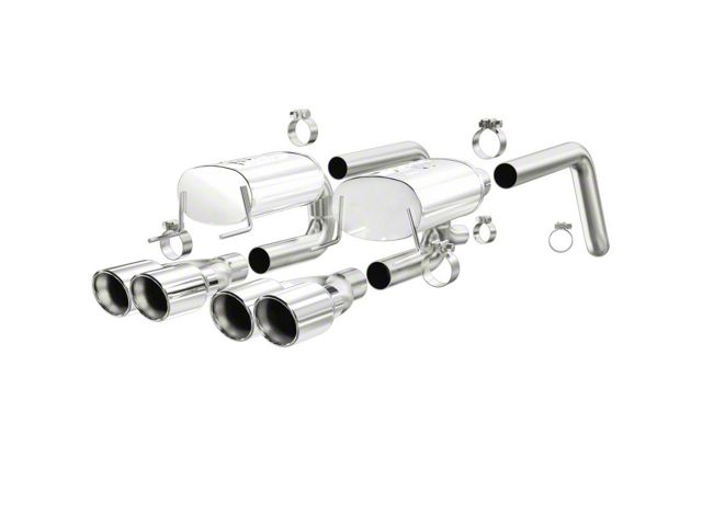 The MagnaFlow 2005-2008 Chevrolet Corvette Street Series Axle-Back Performance Exhaust System 15886 brings enhanced engine sound and dyno-proven performance to your 6.0L, 6.2L 2005-2008 Chevrolet Corvette with a healthy helping of our deep, resonant signature exhaust note at Moderate exterior and Mild interior sound levels. Thanks to its durable, corrosion resistant stainless steel design, this Chevrolet Corvette exhaust system will handle whatever tarmac you decide to leave your mark on. This performance exhaust kit features an axle-back layout designed to replace your Chevrolet Corvette's exhaust system from near the rear axle on back. With its fast-flowing, mandrel bent 2.5in. main piping and 2 Straight-Through mufflers ending in a Quad Center Rear exit with 4in. Polished Welded-On Double Wall Angle Cut Rolled Edge tips, your ride will be sounding as awesome as it looks. Extensive 3D scanning during development has resulted in a direct-fit design that you can easily install yourself. 15886 is produced using CNC precision robotic manufacturing techniques and is backed by MagnaFlow's 1-year limited finish warranty and limited lifetime construction warranty.