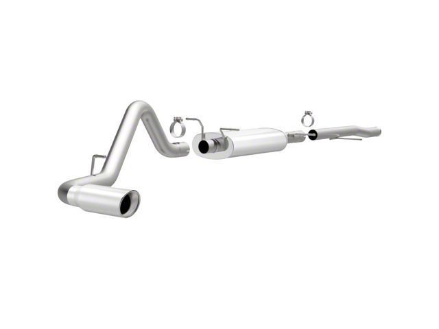 The MagnaFlow Street Series Cat-Back Performance Exhaust System 15564 brings out the personality of your Truck with our signature resonant, powerful engine tone and dyno-proven performance. Thanks to its fast-flowing, mandrel bent 3in. main piping and 1 Straight-Through mufflers ending in a Single Passenger Side Rear exit with 4in. Polished Welded-On Double Wall Angle Cut Rolled Edge tips, this Truck exhaust kit has the performance chops to match its sporty sound and appearance. Upgrade your ride to the next level with an exhaust that has the pipes to put other Truck's to shame. With this system your vehicle will be producing Moderate exterior and Mild interior sound levels while leaving other cars and trucks feeling envious at every stoplight. Exhaust kit 15564 features a cat-back layout that replaces your ride's stock exhaust components from near the catalytic converter on back. Extensive 3D scanning during development has resulted in a direct-fit design that you can easily install yourself. 15564 is produced using CNC precision robotic manufacturing techniques and is backed by MagnaFlow's 1-year limited finish warranty and limited lifetime construction warranty.