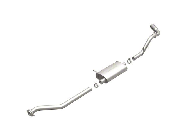 The MagnaFlow Street Series Cat-Back Performance Exhaust System 15618 brings out the personality of your Truck with our signature resonant, powerful engine tone and dyno-proven performance. Thanks to its fast-flowing, mandrel bent 3in. main piping and 1 Straight-Through mufflers ending in a Single Passenger Side Rear exit with 4in. Polished Welded-On Single Wall Angle Cut Rolled Edge tips, this Truck exhaust kit has the performance chops to match its sporty sound and appearance. Upgrade your ride to the next level with an exhaust that has the pipes to put other Truck's to shame. With this system your vehicle will be producing Moderate exterior and Mild interior sound levels while leaving other cars and trucks feeling envious at every stoplight. Exhaust kit 15618 features a cat-back layout that replaces your ride's stock exhaust components from near the catalytic converter on back. Extensive 3D scanning during development has resulted in a direct-fit design that you can easily install yourself. 15618 is produced using CNC precision robotic manufacturing techniques and is backed by MagnaFlow's 1-year limited finish warranty and limited lifetime construction warranty.