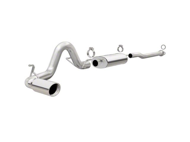 The MagnaFlow 2013-2015 Toyota Tacoma Street Series Cat-Back Performance Exhaust System brings out the personality of your 4.0L 2013-2015 Toyota Tacoma with our signature resonant, powerful engine tone and dyno-proven performance. Thanks to its fast-flowing, mandrel bent 3in. main piping and 1 Straight-Through mufflers ending in a Single Passenger Side Rear exit with 4in. Polished Welded-On Double Wall Angle Cut Rolled Edge tips, this Toyota Tacoma exhaust kit has the performance chops to match its sporty sound and appearance. Upgrade your ride to the next level with an exhaust that has the pipes to put other Toyota Tacoma's to shame. With this system your vehicle will be producing Moderate exterior and Mild interior sound levels while leaving other cars and trucks feeling envious at every stoplight. Exhaust kit 15315 features a cat-back layout that replaces your ride's stock exhaust components from near the catalytic converter on back. Extensive 3D scanning during development has resulted in a direct-fit design that you can easily install yourself. 15315 is produced using CNC precision robotic manufacturing techniques and is backed by MagnaFlow's 1-year limited finish warranty and limited lifetime construction warranty.