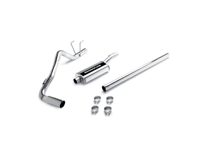 The MagnaFlow 2006-2007 Dodge Ram 1500 Street Series Cat-Back Performance Exhaust System brings out the personality of your 5.7L 2006-2007 Dodge Ram 1500 with our signature resonant, powerful engine tone and dyno-proven performance. Thanks to its fast-flowing, mandrel bent 3in. main piping and 1 Straight-Through mufflers ending in a Single Passenger Side Rear exit with 4in. Polished Welded-On Double Wall Angle Cut Rolled Edge tips, this Dodge Ram 1500 exhaust kit has the performance chops to match its sporty sound and appearance. Upgrade your ride to the next level with an exhaust that has the pipes to put other Dodge Ram 1500's to shame. With this system your vehicle will be producing Moderate exterior and Mild interior sound levels while leaving other cars and trucks feeling envious at every stoplight. Exhaust kit 16699 features a cat-back layout that replaces your ride's stock exhaust components from near the catalytic converter on back. Extensive 3D scanning during development has resulted in a direct-fit design that you can easily install yourself. 16699 is produced using CNC precision robotic manufacturing techniques and is backed by MagnaFlow's 1-year limited finish warranty and limited lifetime construction warranty.
